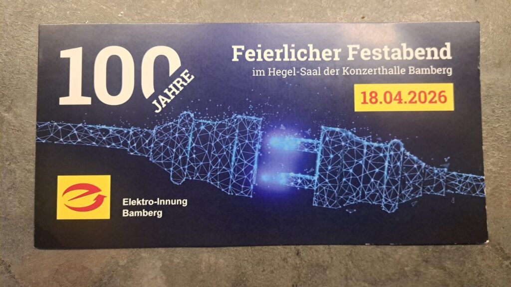 Vorstand bei „100 Jahre Elektro Innung Bamberg“ 18. April 2026 Gepostet in Allgemein ← 1Home Solutions GmbH